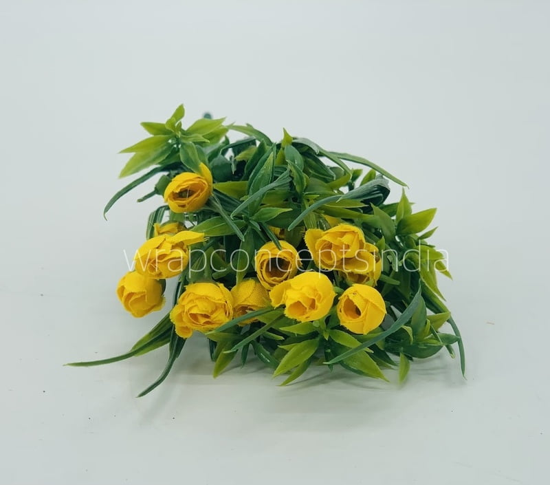 Leaves, fern with small yellow & white flowers on stick to be used as it is or as add-ons for hair ornaments, gift packing, hamper decoration, decor, flower jewellery, etc.