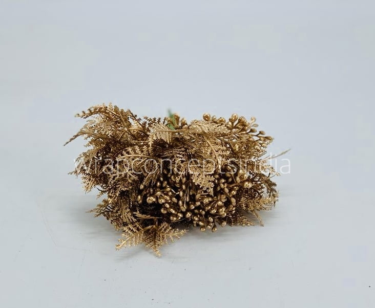 Gold bunch with leaves & fern can be used on sticks or just flower heads to beautify that gift packing, decoration, decor, etc.