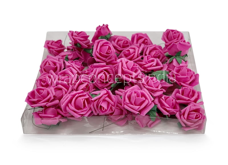 Fuchsia Pink Foam Rose flower on stick to be used as it is or with other add ons to beautify that gift packing, hamper packaging, hair accessories, floral jewellery, decor, etc.