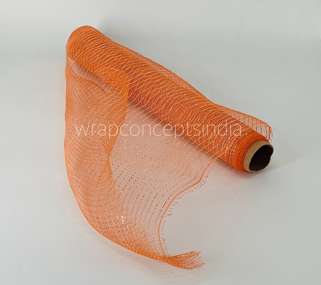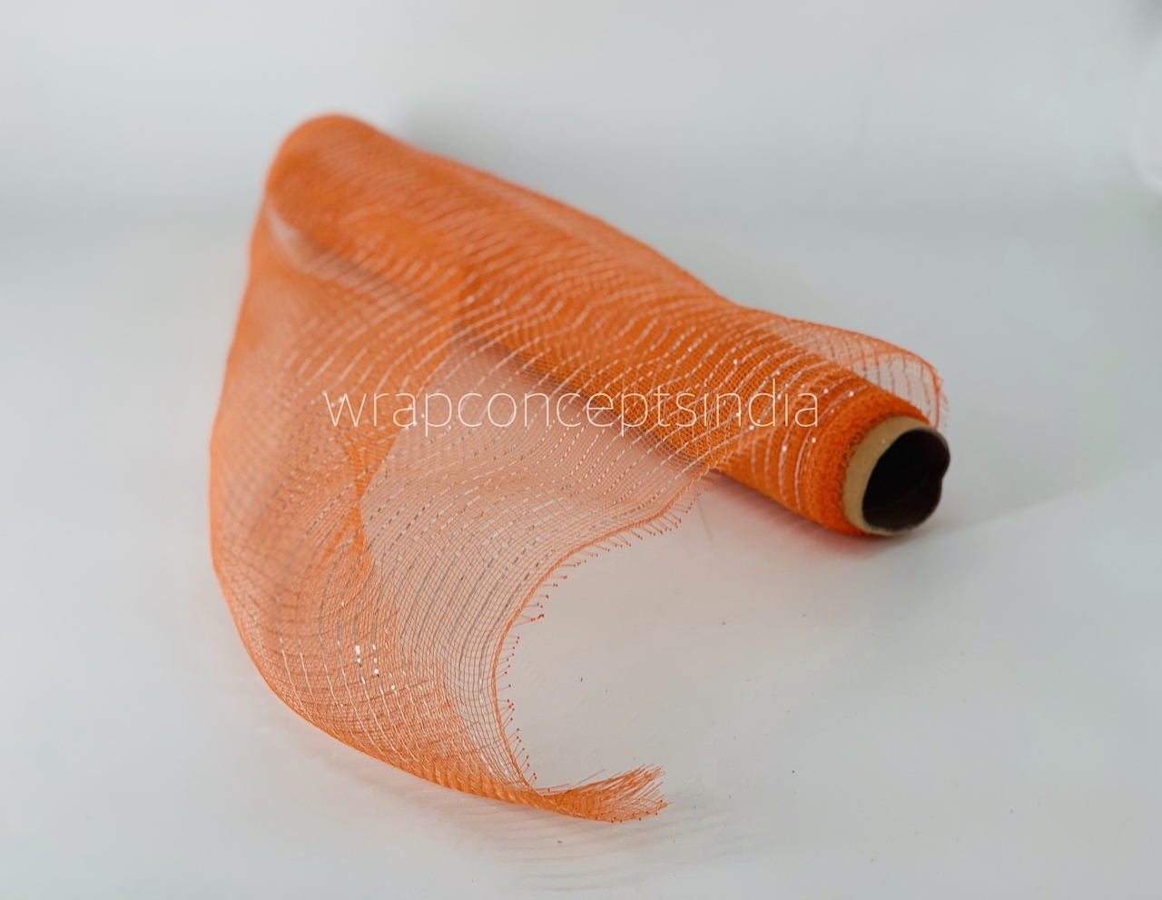 Wrapping net with thin silver weaves to add zing & pop to your hampers, gift or basket packing, etc.Colour - Orange with Silver