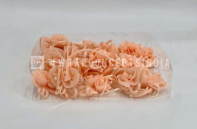 Two- flower bow tie with pearls to be used with other add ons or as it is to beautify that gift packing, hamper packaging, etc.